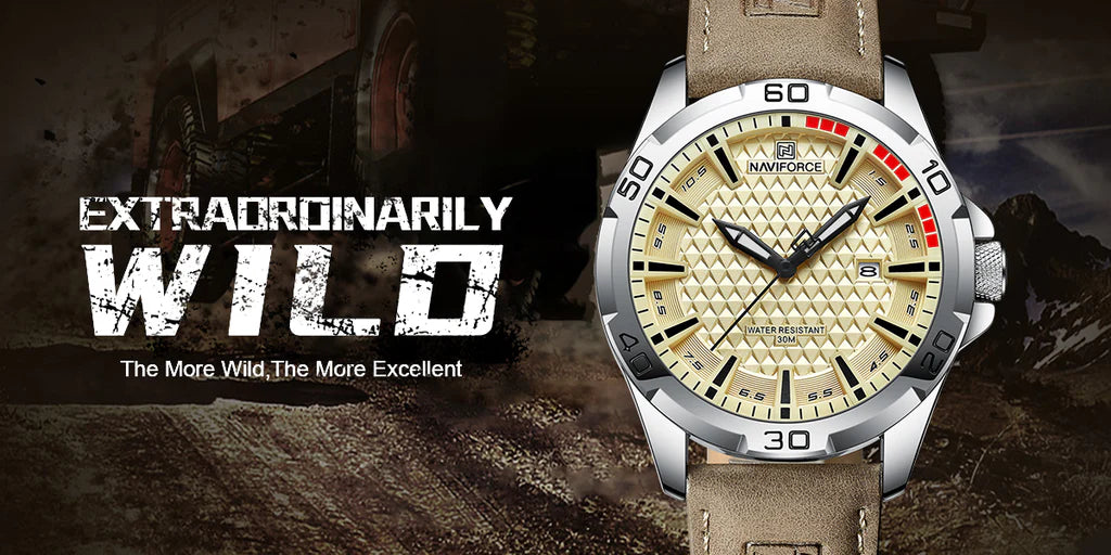 NAVIFORCE NF8078 Men’s Sport Watch – Classic Compass Dial, Luminous Quartz, Waterproof Leather Strap