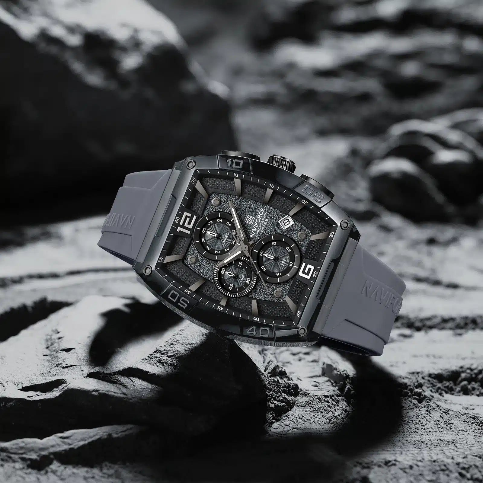NAVIFORCE NF6101 Men's Translucent Square-Case Watch, Multi-Dial Chronograph, Water Resistant with Precision Timing and Luminous Accents