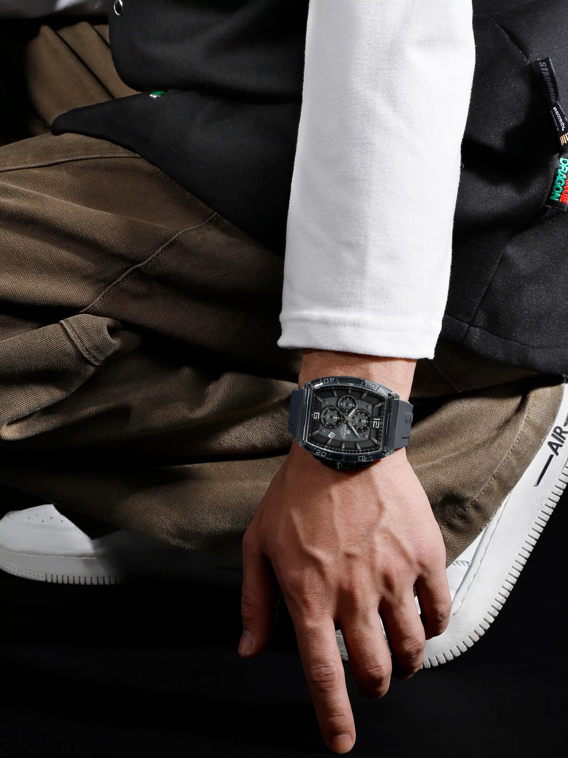 - Style / Use-Case: Sporty / business casual, good for everyday wear, distinct design – the manufacturer describes it as “barrel-shaped sports watch” blending style & function.