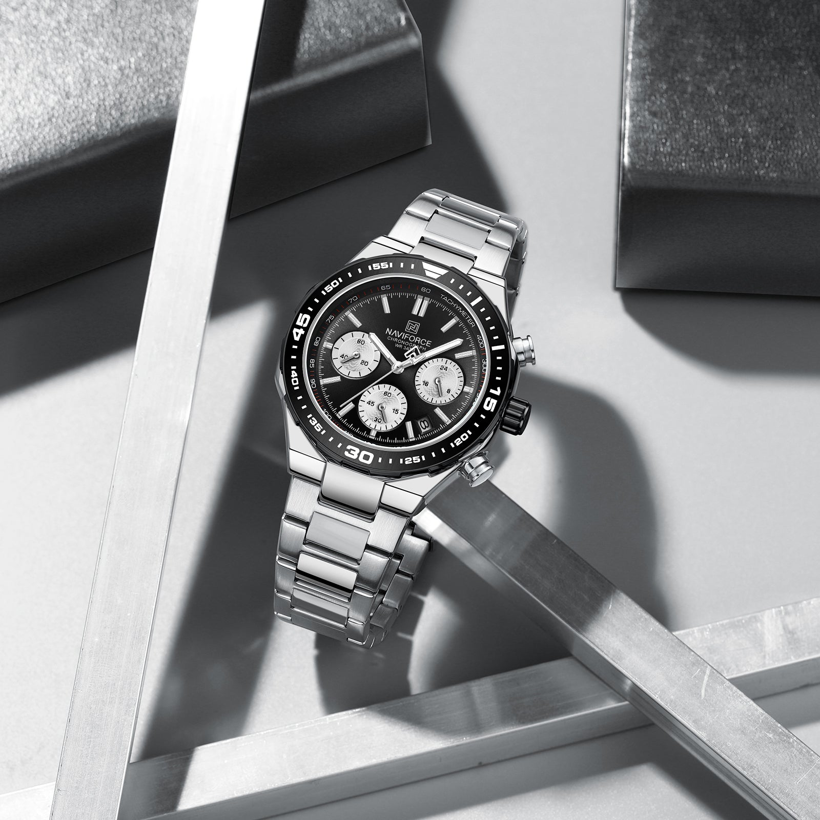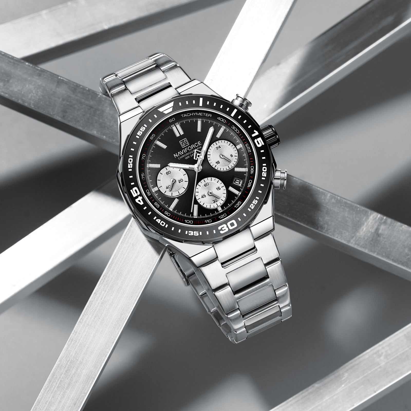 NAVIFORCE NF8049 Gilded Series: Men's Multi-Layered Dial Quartz Chronograph Watch – Waterproof, High-Visibility Lume & Chrome Finish