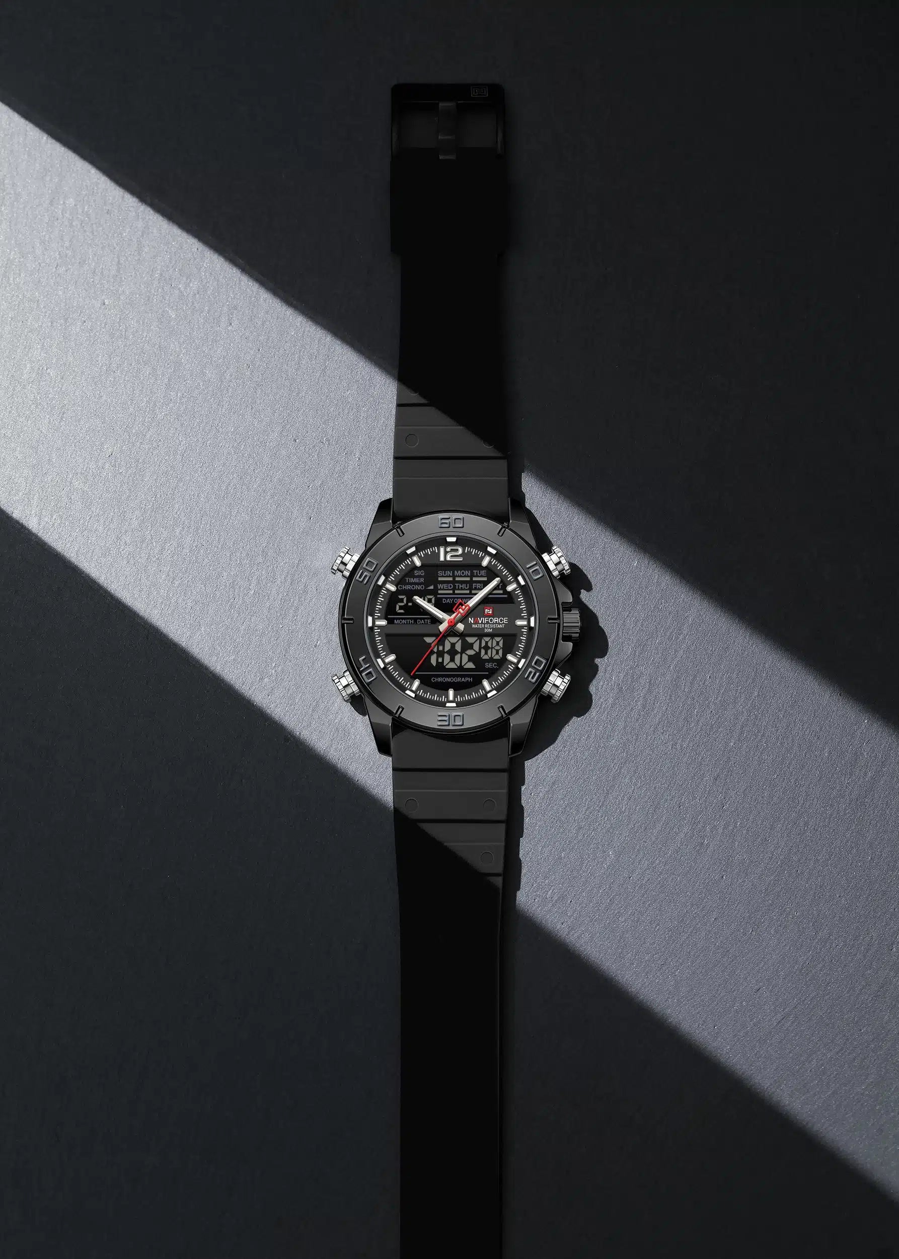 NAVIFORCE NF9253 Tactical Commander: Rugged Dual-Display Military Watch with LED Backlight and Alarm